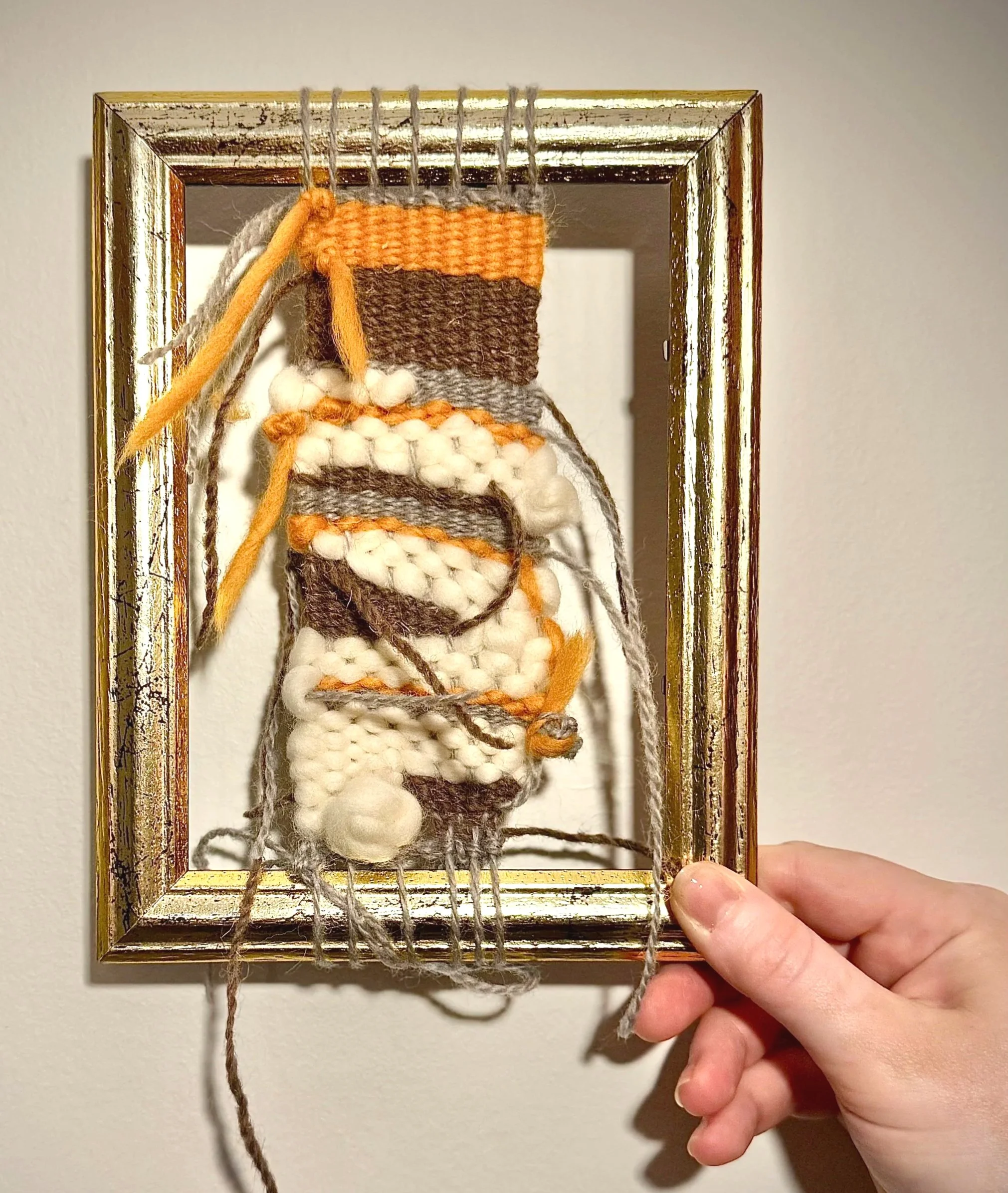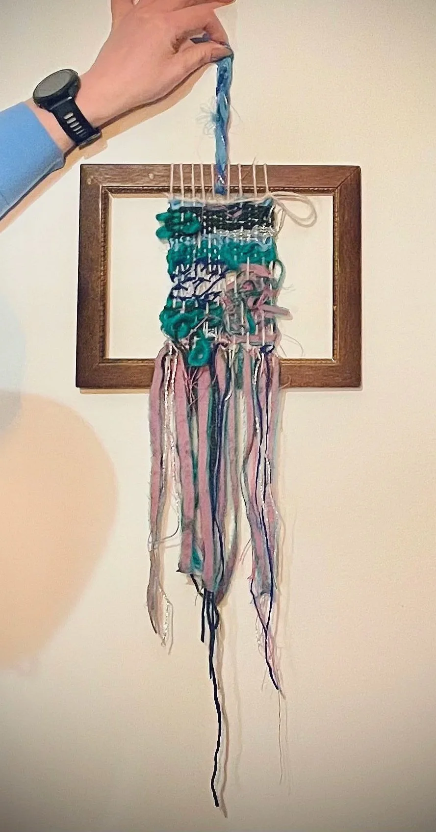 the advantage of weaving in this way, especially as a beginner, is your free to experiment knowing the structure of your art-piece will hold itself.